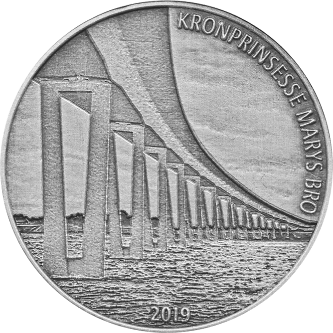 Bromedaljen i finsølv, 999/1000, leveres i blå æske med indlægsseddel og koster kr. 350. Oplaget på 100 medaljer vil være nummereret i randen.